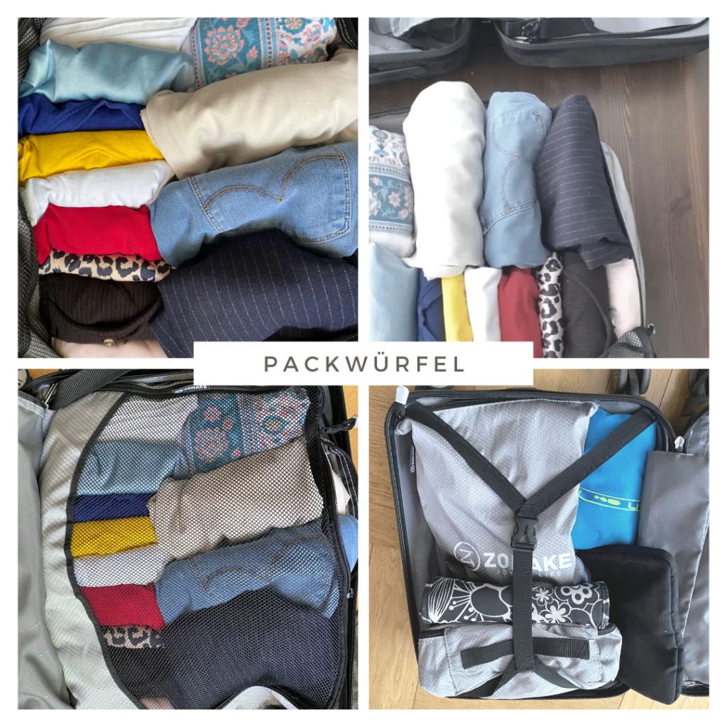 Packwürfel sind so hilfreich, um den begrenzten Platz im Koffer oder Rucksack optimal zu nutzen und gleichzeitig für Ordnung zu sorgen.